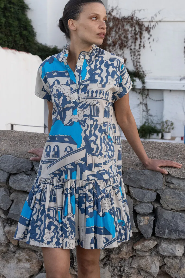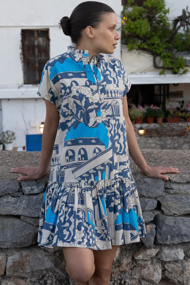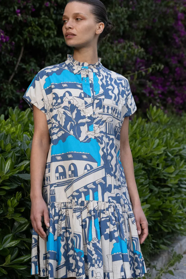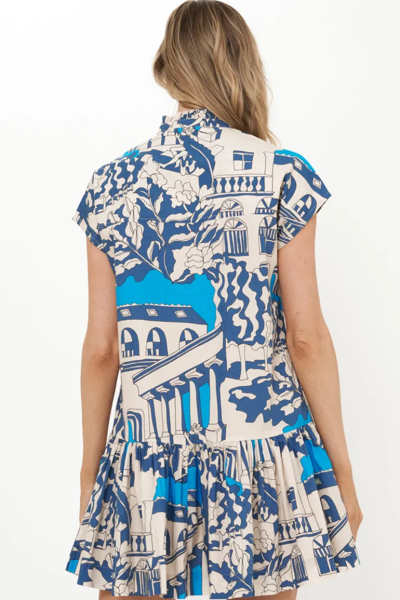 The Cap Sleeve Midi’s vintage inspired fit and flare silhouette instantly elevates your everyday.The the scenic illustrations of the Roma Blue color-way add whimsy to this classic style.