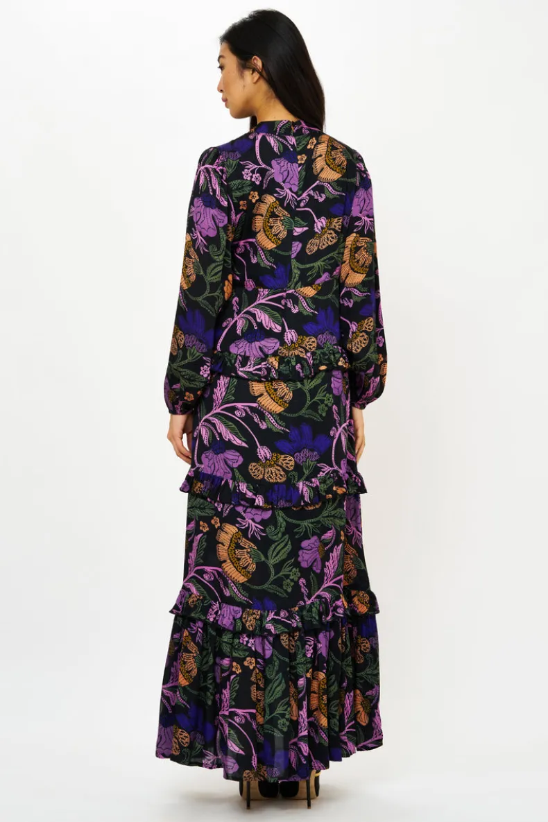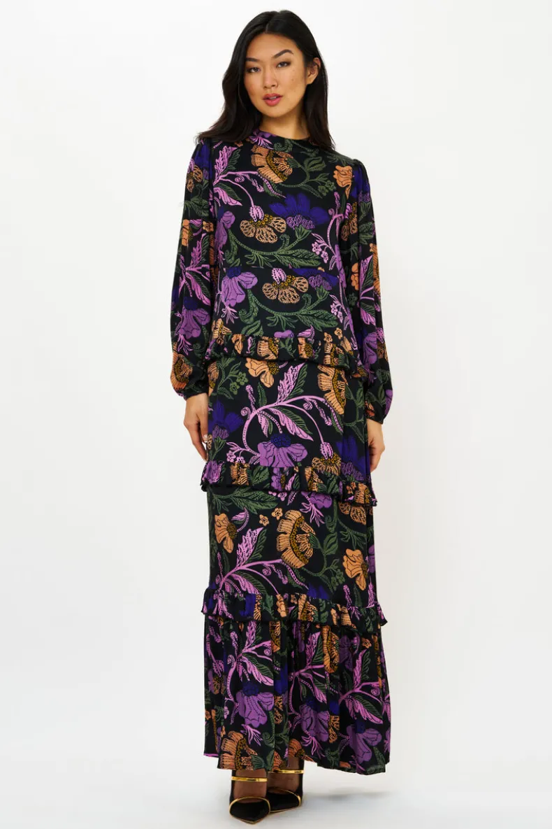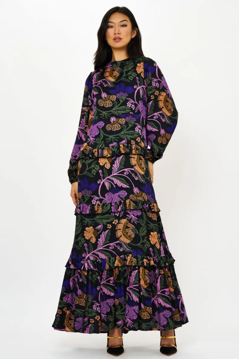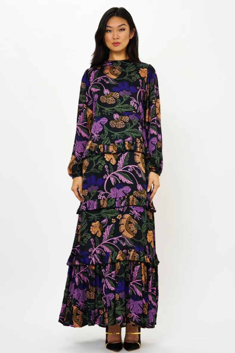 The Mock Neck Maxi is a quintessential dress for an elevated evening during the cooler months. A classic and elegant design in the softest silk viscose fabric adds a touch of romance to every tier.