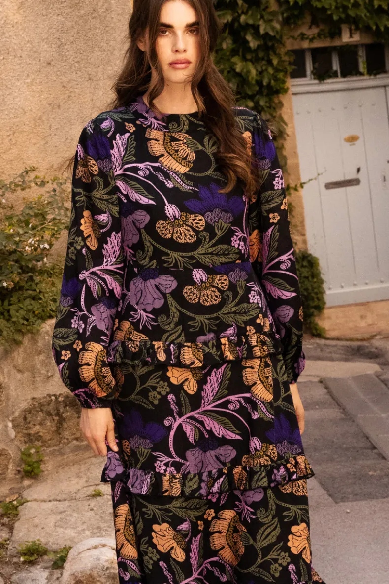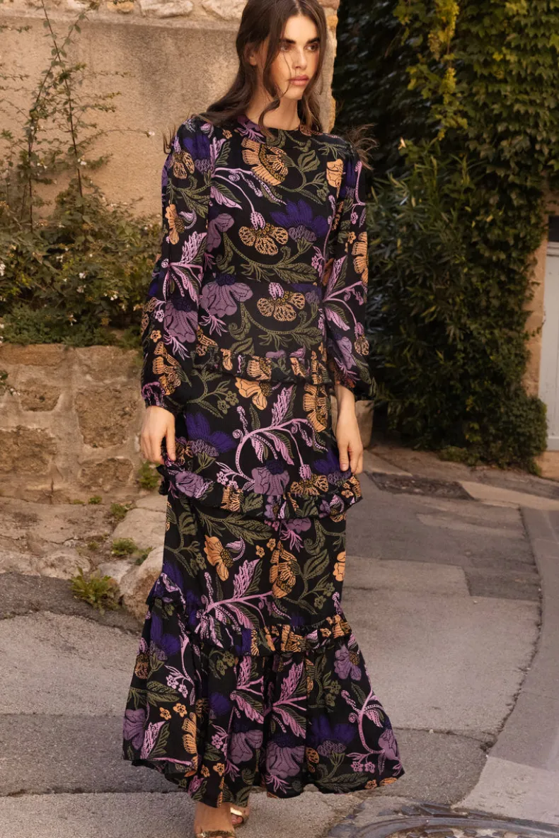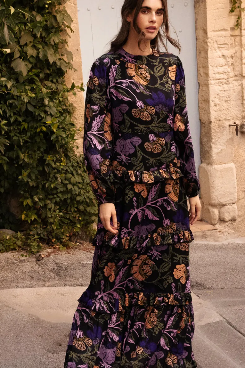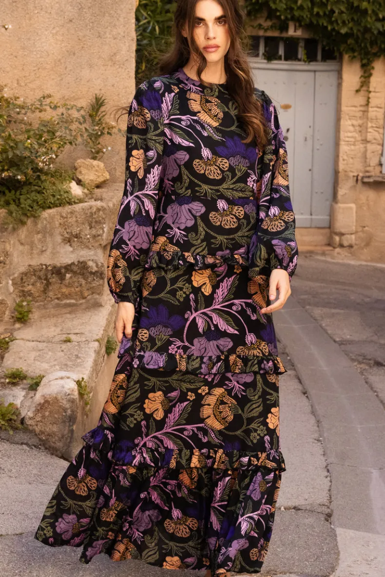 The Mock Neck Maxi is a quintessential dress for an elevated evening during the cooler months. A classic and elegant design in the softest silk viscose fabric adds a touch of romance to every tier.