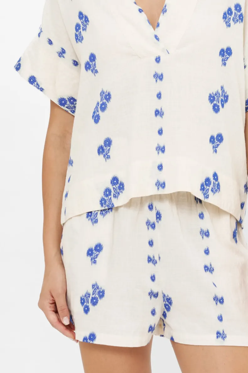 Soft embroidered floral patterns grace ultra soft woven cotton fabric. Delicate details paired with a hand smocked waistband make these shorts a dream to wear!