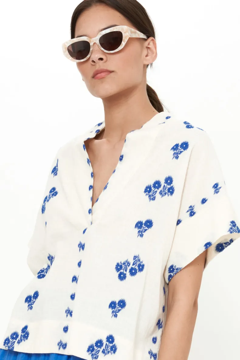 Beautifully embroidered floral patterns grace ultra soft woven cotton fabric.Drop sleeves and an oversized fit to keep you cool, this will become a staple in your warm weather wardrobe!